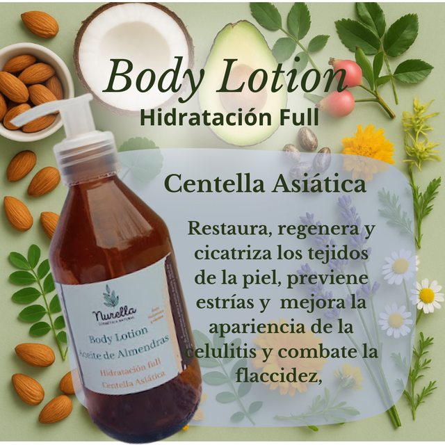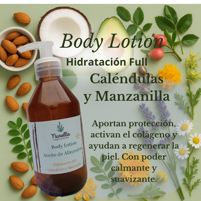 Body Lotion - cremas corporales con aceite de almendras y ácido hialurónico. Hidratación full.
