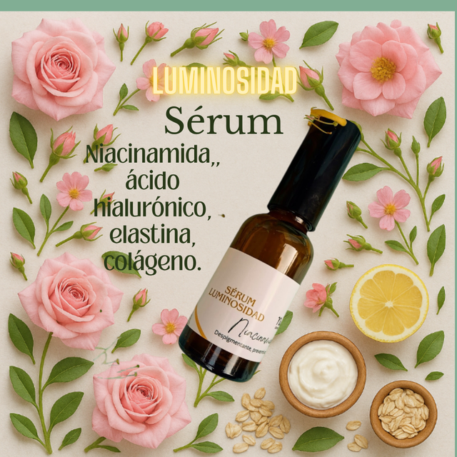 Niacinamida,, ácido hialurónico, elastina, colágeno.